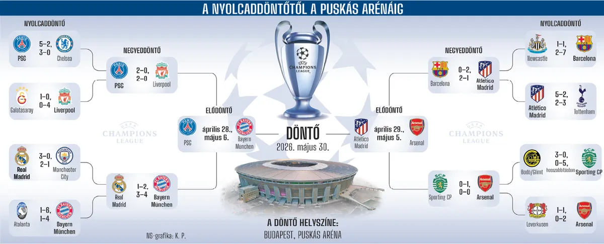 Párizs, München – e két város csapata nyugodtan megnyerheti a Bajnokok Ligáját 2026 tavaszán Budapesten a Puskás Arénában május 30-án, az egyáltalán nem lenne meglepetés. Az már a sorsoláskor látszott, ez a nehezebb ág, emiatt a PSG vagy a Bayern nem lehet ott majd a fináléban, pedig – ez nem kérdés – ott lenne a helye.