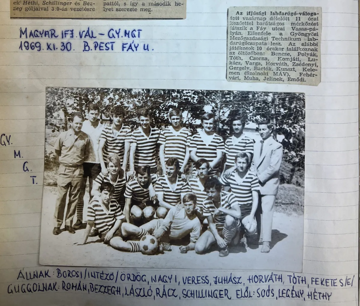 Ki tudja, hány kézzel írott, újságkivágásokkal, fényképekkel teleragasztott napló fekszik elfeledve régi játékosok fiókjaiban? A felbecsülhetetlen értékű futballtörténeti leletekből a Kárpát-medencét bejáró Hátsó füves-barangolások során mi magunk is találkoztunk jó néhánnyal, a püspökhatvani Czerovszki Mihály kincsesfüzetétől kezdve a ketesdi Czondi Árpád csodálatos erdélyi futballalbumán keresztül Zsifkovits László révfülöpi gyűjteményével bezárólag. A szebbnél szebb példákat még lehetne sorolni, ám ezek között is kuriózumnak hat Román Péter példás alapossággal vezetett, gyöngyösi, becsehelyi és lenti futballkalandoknak szentelt naplókötete. Az 1960-as években a Gyöngyösi Mezőgazdasági Technikum csapatából induló, a Heves megyei ifjúsági válogatottban is megforduló szerző a Zalai mezbirodalom című kiálítás hévízi helyszínén engedett betekintést a futballkincs lapjain őrzött történetekbe és fotóemlékekbe, a becsehelyi és a lenti labdarúgás múltjának emlékezetes részleteibe.