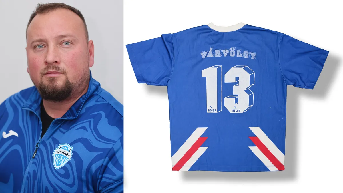 „A várvölgyi futballcsapat 1971-ben alakult Törekvés SE néven. Az itt látható mezt idősebb Cserép Jenő, középpályás, a korszak meghatározó játékosa viselte, rengeteg gól és gólpassz fűződik a nevéhez. Jenőnek három fia van, mindhárom futballista lett. Cserép Jenő kapusposzton, középső fia, Róbert és a legkisebb, Dániel egyaránt középpályás poszton szerepel. A 13-as számú mez öröklődik a családban, Róbert és Dániel is gyakran játszott már benne, sőt már Róbert fia, Dávid is felhúzta.”