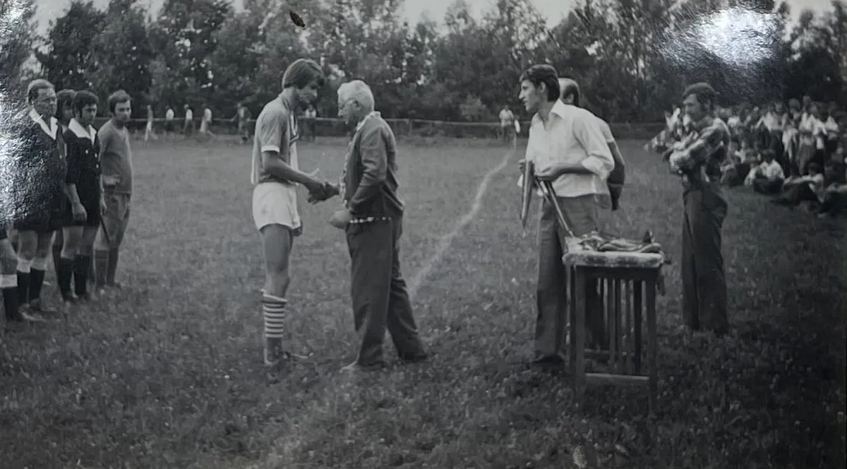 „A nemesbükiek híresek voltak arról, hogy a falusi bálokban rendre nagy verekedéseket rendeztek. A sportban nagyon jó kapcsolatot ápoltunk velük mi, kustányiak. Meghívást kaptunk tőlük egy meccsre, traktorral mentünk. A két falut egy hegy választja el, a következő település már Hévíz. Mesés hely Nemesbük, jó emberekkel, akik nemcsak verekedni, de futballozni is tudtak. Az a meccs úgy kezdődött, hogy alig ment le az »éljen, éljen«, máris rúgtam két gólt, a labda a másodiknál beszorult a vinklibe. Nyertünk 5–2-re, de közben jött az eső, a traktor hazament, mi meg nyolcan-tízen ott maradtunk, élveztük a kocsmában a helyiek vendégszeretetét. Én nem nagyon iszom alkoholt, de akkor még talán én is fogyasztottam valamit. Hosszú volt az út hazafelé, mert akadt, aki menet közben négykézlábra került. A hegyen át vezető földúton nehéz volt haladni, néhányan egy ottani szőlőföld karóit szedték ki a földből, hogy segítsék az előrejutásukat. Megérkeztünk Kustányba, ahol aznap éppen bált rendeztek, és ahogy voltunk, sárosan be is kapcsolódtunk a mulatságba. Ünnepeltek minket a helyiek. Másnap már kevésbé, mert kiderült, hogy az egyik helyi szőlősgazda karóit húzgáltuk ki. A szálak hozzánk, futballistákhoz vezettek, úgyhogy kedden este rendkívüli összejövetel volt a hegyen. Szó se róla, tisztességgel meg is csináltuk Sági bácsinak a karózást.”