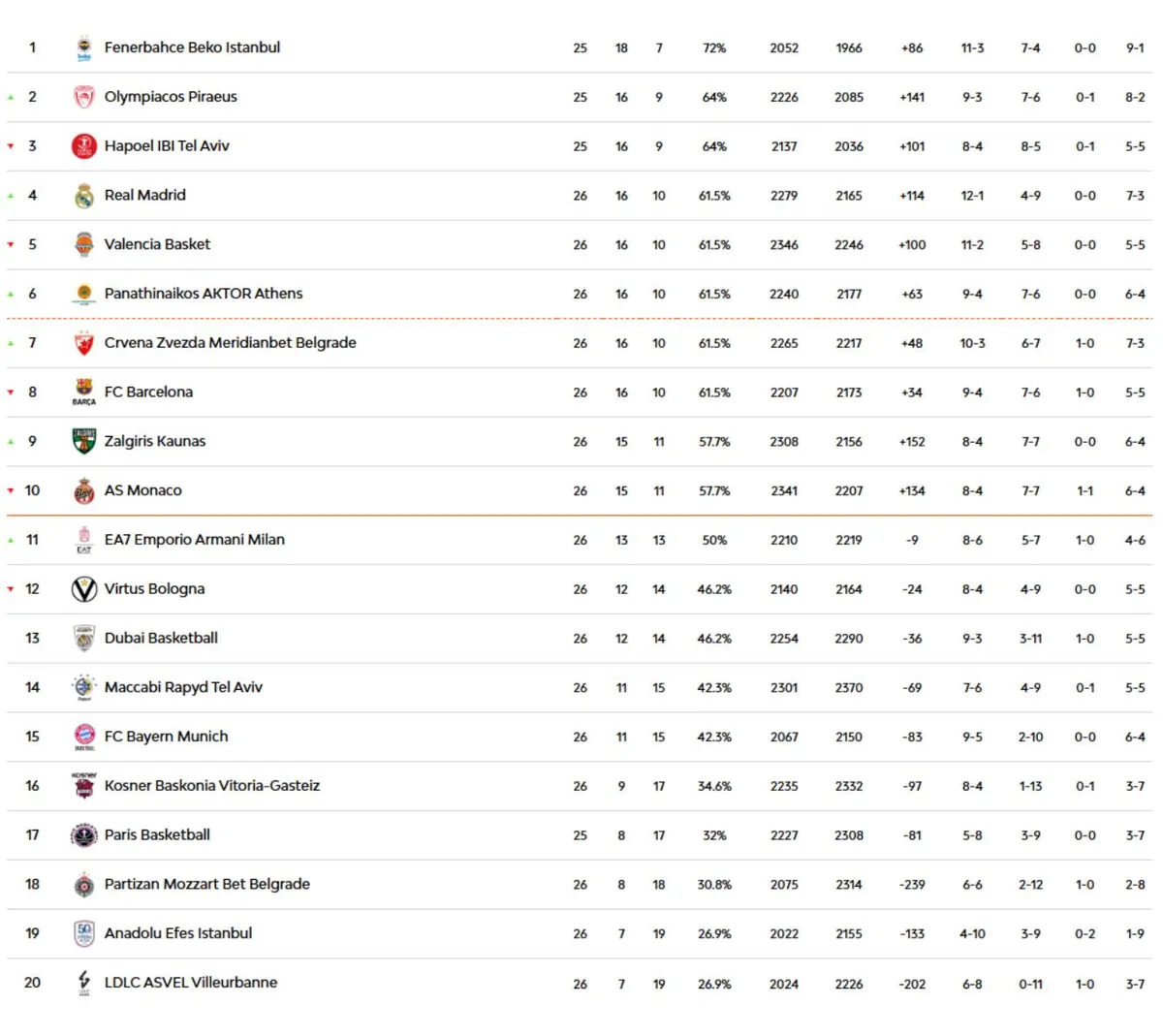 A playint érő helyeket ostromló Virtus nem számíthatott minden játékosára, és sok hibával tarkított játékát az ASVEL kihasználta. Glynn Watson a 19 pontjából 12-t az utolsó negyedben dobott, amikor másodszor is el tudott húzni a csapata, immár véglegesen. A lyoniak 11 vereség után törték meg rossz idegenbeli szériájukat. A hazai lőlapot Carsen Edwards 20 ponttal vezette.