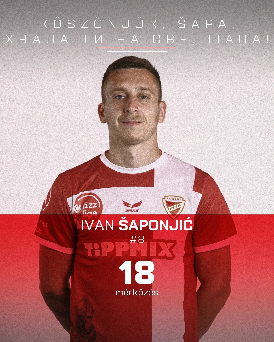 Szintén pénteken közölte a DVTK, hogy közös megegyezéssel felbontotta a tavaly nyáron igazolt Ivan Saponjics szerződését. A szerb támadó 17 bajnokin háromszor volt eredményes a klub színeiben. ![]() |