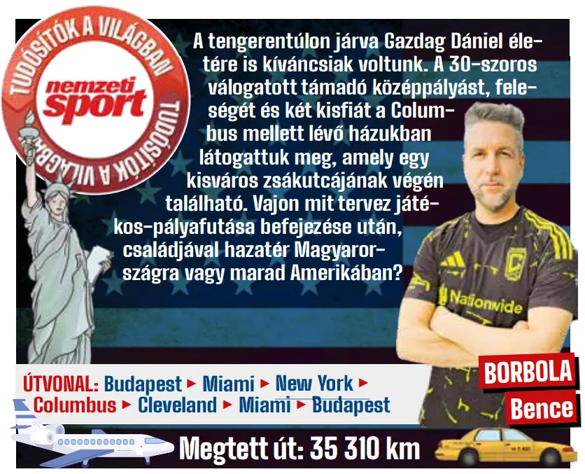 Amint az autópályáról beérünk a faluba, filmbe illő utcák nyílnak előttünk. Jobbról és balról egyaránt rendezett házak, és bár nem sablon épületek, mintha mind ugyanabban a stílusban készült volna. Kanyarodunk néhányszor, majd egy kis zsákutca utolsó előtti háza előtt húzódunk le, a nyár óta itt lakik Gazdag Dániel és családja. A Columbus Crew áprilisban vásárolta ki a 30-szoros válogatott támadót a Philadelphia Uniontól, aki feleségével a kezdeti átmeneti (szállodai) időszakot követően több házat is megnézett, végül ebbe a zsákutcában lévő házba szeretett bele.