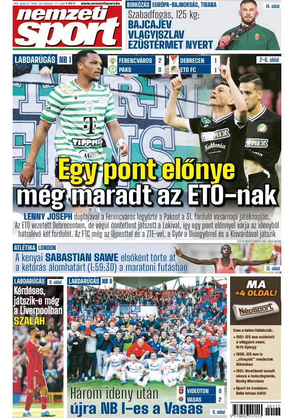 A NEMZETI SPORT NAPILAPOT DIGITÁLIS FORMÁBAN ITT OLVASHATJA EL!