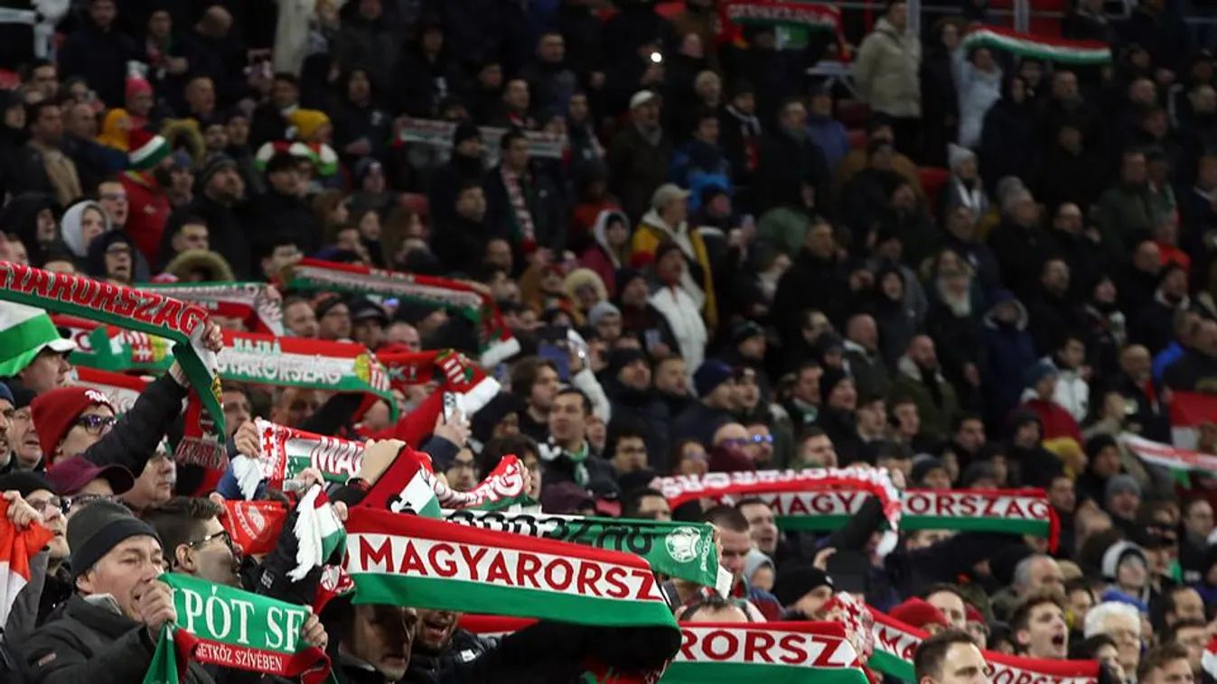 Válogatott: vonulás, motozás, transzparensek, pirotechnika